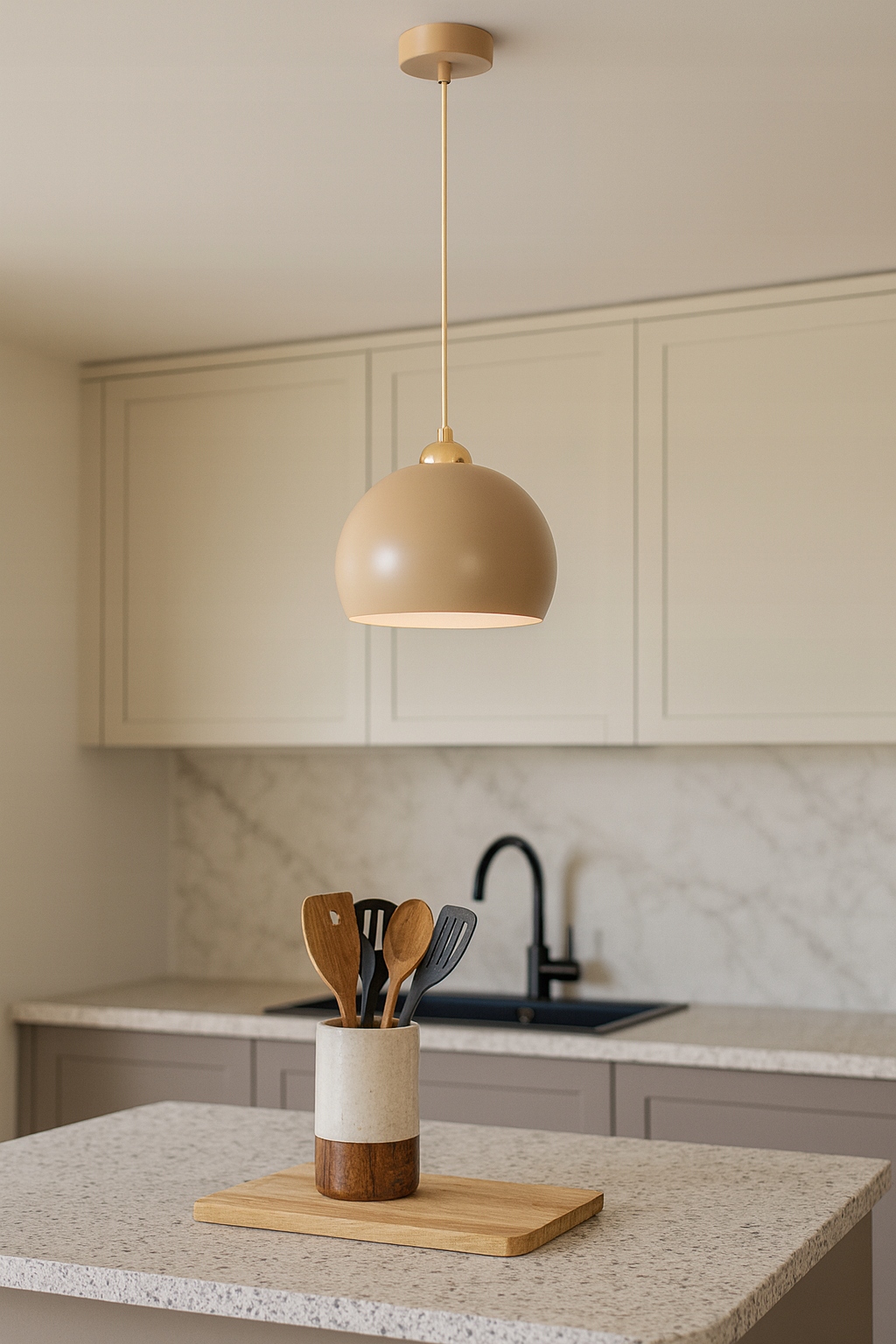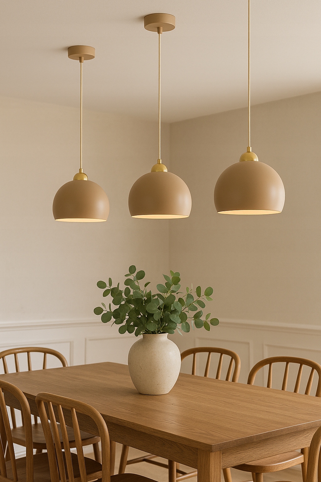 Nowoczesna lampa wisząca sufitowa Solena w kolorze kaszmiru z dodatkiem złota to jeden z naszych najnowszych produktów wpasowywujący się w najnowsze trendy w wykończeniu wnętrz. Jej piękny kaszmirowy kolor oraz złote dodatki wprowadzą do Twojego pomieszczenia odrobinę luksusu i elegancji.